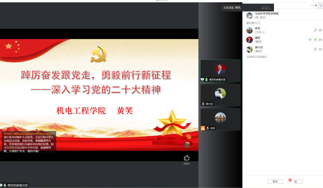 此次宣讲会强化了大家对党的二十大精神的深刻理解,掀起了学习宣传贯彻落实党的二十大精神的热潮,相信银河娱乐App 学子定不会辜负习近平总书记的殷切嘱托,让青春在全面建设社会主义现代化国家的火热实践中绽放绚丽之花。