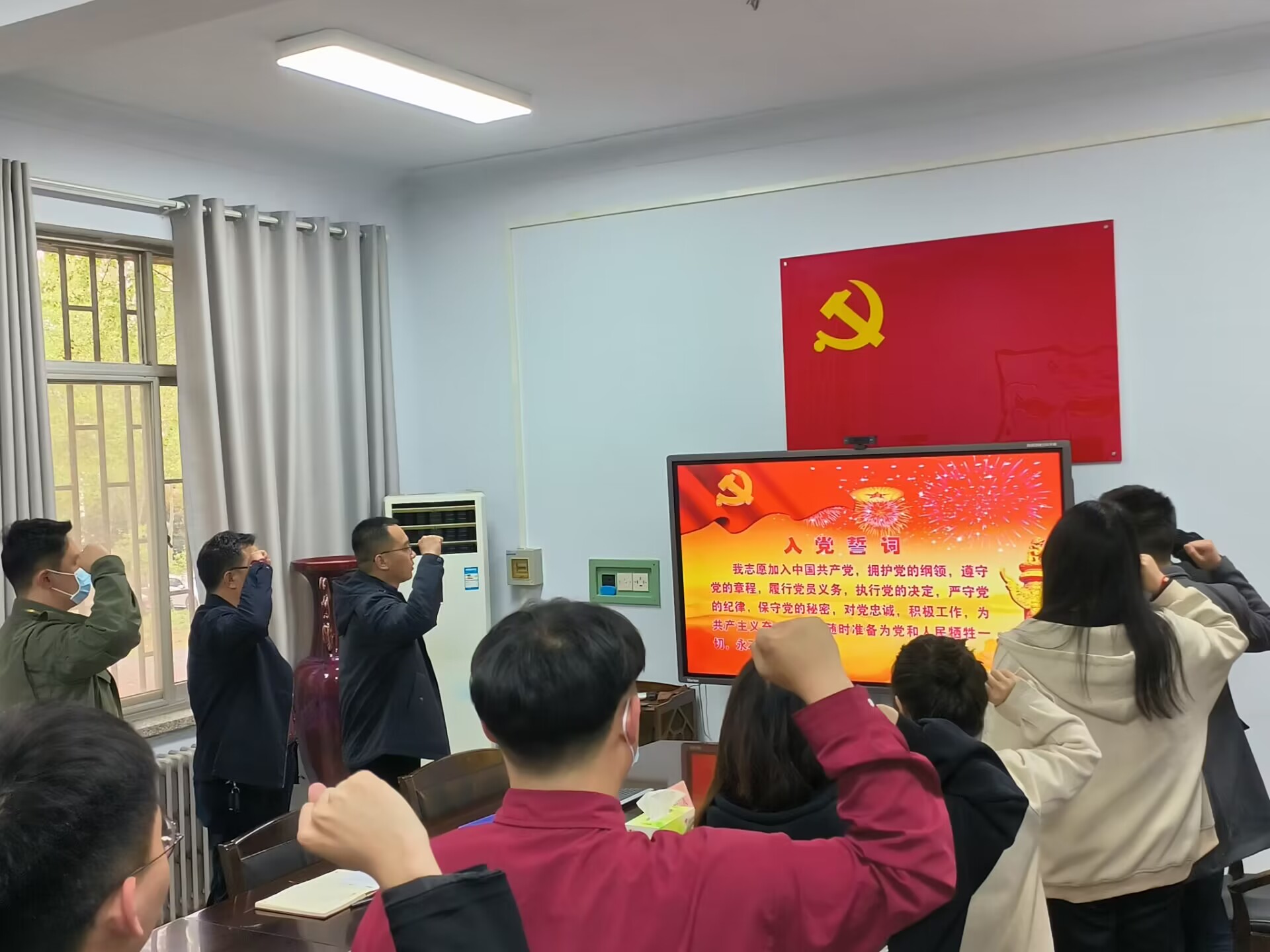 会议伊始,王建忠与张晶分别介绍各银河娱乐App 党支部成员及发展状况。随后,共建支部党员成员采取集中学习及座谈交流的形式观看《榜样7》专题节目,汲取榜样力量,感悟初心使命。节目播放完毕,王建忠强调:党员要坚守初心,以一个党员一面旗帜、一个支部一个堡垒的“四个一”方针为核心,坚定理想信念、践行榜样精神;与会老师围绕《榜样7》纷纷发言,并鼓励广大青年党员践行“顶天立地,躬身为民”、“以身许党、矢志为民”的精神,以实际行动全心全意为人民服务。与会学生党员纷纷表示:要以榜样为镜,向先进看齐,学习和弘扬新时代榜样精神,汲取内心榜样的强大正能量,将灵魂触动转化为实际行动,用奋斗擦亮共产党员的底色。最后,赠书仪式上王建忠带领全体成员宣读入党誓词。