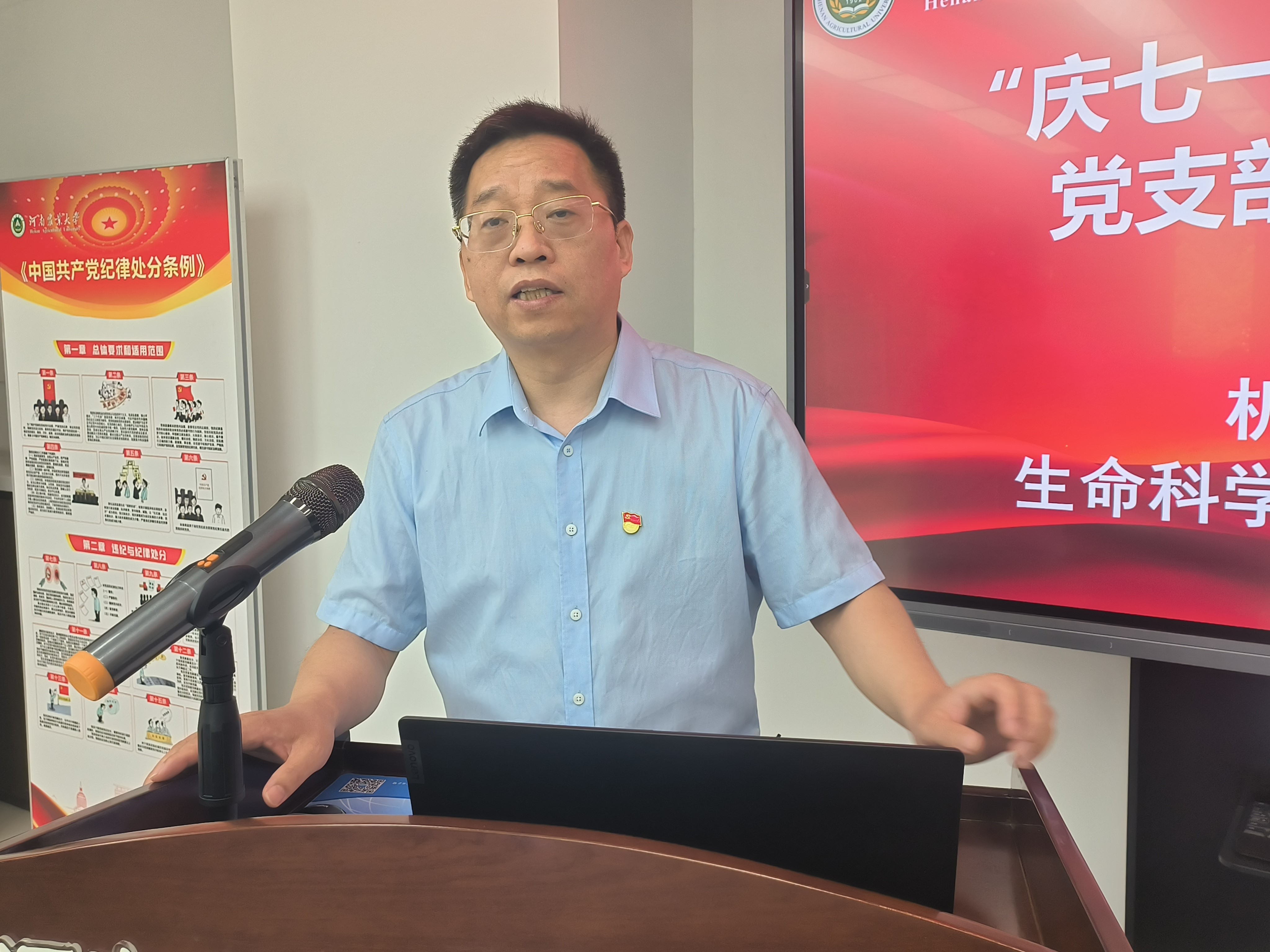 本网讯(通讯员 刘展)七月的党旗迎风飘扬,七月的党徽熠熠生辉。为庆祝中国共产党成立103周年,深入学习贯彻习近平新时代中国特色社会主义思想,进一步推进党纪学习教育走深走实,不断加强党组织的凝聚力和战斗力,6月28日上午,银河娱乐App 学生第一党支部与机关党委党支部在龙子湖校区综合楼214会议室联合开展“庆七一 颂党恩 强党性”支部共建活动。校机关党委书记李为、银河娱乐App 党委书记刘国兵、党委副书记张世昌出席活动,共建双方党员参加活动,会议由银河娱乐App 学生第一党支部书记刘展主持。