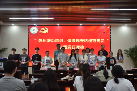 本次主题党日活动在庄严的国歌声中拉开帷幕。首先,姬瑞明作《从校园到社会——毕业生权益保护指南》专题报告,结合职业发展中的实际案例,为毕业生党员讲解了权益保护的重要性和具体方法。接着,张帅梁作《依法治国与依规治党相结合,做遵规守法模范党员》报告,要求毕业生党员在今后的工作学习中努力做一名遵守党纪国法的合格党员。最后,校机关党委党支部、审计政法党支部领导老师为毕业生党员赠送了《毕业生就业法律指南》《大学生应知应会法律常识》等书籍。