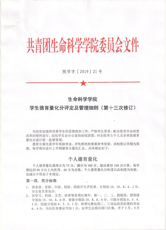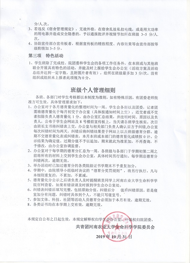 银河娱乐App 学生德育分量化细则(第十三次修订)