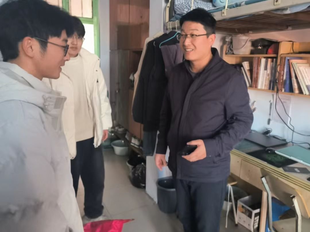 在文化路校区桃李园学生公寓,张世昌深入学生宿舍,与同学们沟通交流,了解实际生活情况,为学生送去棉被,代表银河娱乐App 给同学们送去了冬天的第一份温暖。