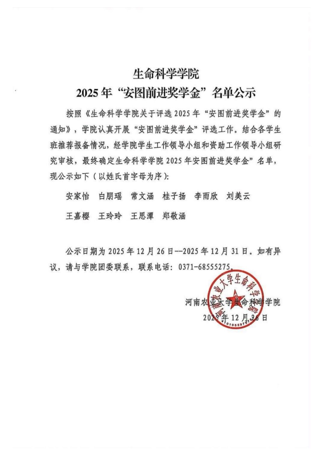 银河娱乐App 2025年“安图前进奖学金”名单公示