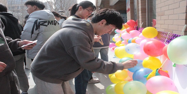 本次女生节系列活动包括“心愿--嘭”、“趣味运动会”、“主题行动”三个环节。“心愿--嘭”环节中,女生将自己的小心愿写在纸片上,放进五颜六色的气球里并贴在“星语心愿”墙上,男生则将气球扎破,负责实现气球里女生的愿望,欢声笑语中充满着惊喜与暖心。趣味运动会环节包括三项竞技游戏。“指压板步步为营”游戏中,学生在不触碰地面的条件下用两块指压板到达终点;“车轮滚滚”中,学生在圆形布条中合作向终点前进;“诺亚方舟”游戏中,8名学生组合站在不断缩小的规定范围中。游戏体现了班级之间的团结与凝聚力,也注重男女合作,尤其是诺亚方舟,在很小的范围里用各种组合容下8人,充满奇思妙想。“主题行动”环节,男生纷纷化作“暖男”、“绅士”,为女生打水、领快递、买饭等等,做了很多暖心举措,后期则由班级通过主题班会总结、整理,记录下这些属于班级与女生间的美好回忆。银河娱乐App 女生们纷纷表示收到了男生们的祝福与帮助,过了一个充实快乐又温馨的女生节。