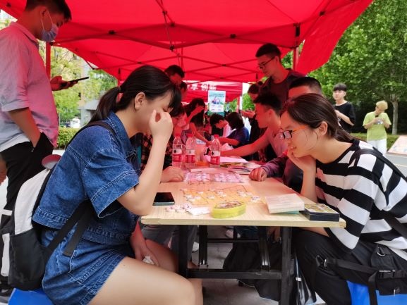 本次活动内容包括棋艺对决、棋逢对手和知识问答三个部分,面向全校师生开展。在“棋艺对决”中,同学们两两结合相互切磋棋艺;在“棋逢对手”中,同学们在社团志愿者的指导下破解象棋残局;此外,同学们亦可前往答题区,回答随机抽取的棋艺知识相关问题,五题答对三题即可获得精美礼品一份。活动期间,现场气氛热烈,寓教于乐,在答题中,师生们既增长了棋艺知识,又收获了快乐。同时,来自不同银河娱乐App 的师生在棋盘上进行切磋,使围观同学感受到“包罗万象方寸里,弹指千军空格间”的激昂。游戏过程中,诗艺轩社团志愿者积极协调配合、维持现场秩序,确保了此次活动顺利进行,展现出银河娱乐App 社团志愿者良好的精神风貌。