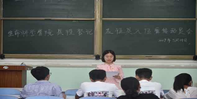 会上,张晶宣读了《关于做好2019年兵役登记及征兵入伍工作的通知》,从兵役登记、征兵对象和范围、应征入伍条件、报名时间和应征程序、大学生应征入伍优惠政策等方面,详细介绍了大学生兵役登记和征兵入伍的流程和相关政策,并要求学生干部要高度重视,广泛宣传,切实落实银河娱乐App 要求,在班级内部开展兵役入伍动员班会,鼓励号召广大适龄学生强化使命意识和责任担当,把握新时代机遇,积极参加兵役登记,踊跃报名参军。之后,团委书记雷雯再一次阐述了大学生应征入伍优惠政策,并结合银河娱乐App 学生实例对大学生应征入伍本地额外奖励优惠政策进行了补充说明,并对有些同学提出的兵役登记疑惑进行了解答。雷雯最后期望广大适龄学生能够积极参军入伍,勇担使命,报效国家。