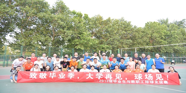 六月如诗,相逢又告别,归帆又离岸,既是往日欢乐的终结,又是未来幸福的开端。携手同窗四年,分别之际,除去满怀的浓浓情谊,更多的是对彼此未来的祝愿与希望。比赛场上,怀揣着对母校的不舍,毕业生与老师尽情挥洒着汗水,这一刻,他们在排球的赛场上,诉说着情谊。老师们精准的发球、场上精彩的传球、扣球、拦网,在观众一声声的欢呼中,双方拼尽全力,进行着毕业生大学生涯的最后一场比赛。不服输的信念、不退缩的步伐、不放弃的执着,无一不彰显着银河娱乐App 学子的青春风采。最后,比赛在观众的欢呼声和各位参赛者的合影中落下帷幕。