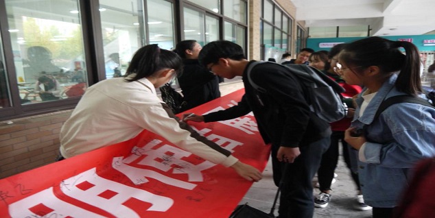 本次活动的主题为“崇尚文明,反思修身”,意在倡议大家积极投身于“基础文明创建月”活动,加强“四项文明”建设:礼仪文明、举止文明、宿舍文明、班级文明;明确“四个禁止”:禁止迟到旷课、禁止晚归外宿、禁止铺张浪费、禁止违章用电;践行“四件小事”:礼貌用语,遵规守纪,举止文明,着装得体。鼓励同学们从力所能及的小事、小节做起,逐步内化为一种行为习惯,提高学生的文明意识和综合素质,促进全体同学做好学生、做文明学生,为银河娱乐App 打造文明和谐、团结友好、积极向上的学风贡献自己的力量。在接下来的签名活动中,同学们踊跃地在“树校园新风,创文明宿舍。做文明使者,展校园风采”的横幅上庄严地签下自己的名字。这一签是浓厚的一笔,是心灵的宣誓,是同学们互相监督的力量,是同学们自我约束的保证。活动结束后,同学们纷纷表示要从自身做起,争做文明大学生,共建文明和谐校园。