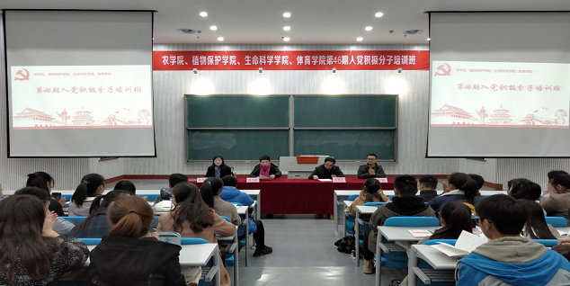 开班典礼在庄严的国际歌中拉开帷幕。王宏立宣读了《农银河娱乐App 、植保银河娱乐App 、生命银河娱乐App 、体育银河娱乐App 第46期入党积极分子党的基本知识培训班计划》,吴旭静对本次培训班的内容及安排进行了简单的介绍,并对参加培训的全体学员提出了希望与要求。在为期两天的集中培训中,授课老师分别围绕《传达学习党的十九大精神》、《中国共产党的最高理想和现阶段的奋斗目标》、《中国共产党的性质和宗旨》、《中国共产党的指导思想》、《中国共产党的组织原则、纪律和作风》、《中国共产党党员的条件和发展程序》六大专题进行了详细解读。