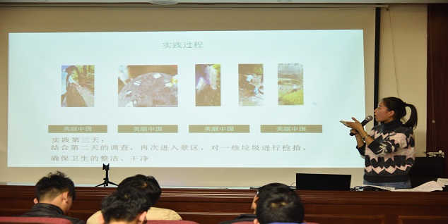 首先,24支优秀社会实践团队依次通过PPT的形式展示实践活动目的、实践概括及主要成果、特色工作和活动收获。其中赴兰考教育关爱服务团、赴伊川县理论普及宣讲团的讲评饱含深情,娓娓道来,呼吁大学生关注农村教育,奉献爱心;赴郑州防溺水教育关爱服务团队的讲评根据一系列数据向人们警示防溺水安全的重要性;赴郑州微生物与人体健康科普团学以致用,讲评丰富饱满,令人发省;赴钧都神垕古镇大学生宣讲团讲评以钧瓷入手,赞叹传统艺术文化之美,并鞭笞分析,提出问题和思考。重走办学路、爱心支教、精准扶贫、科技支农等多种形式内容的实践活动让他们收获成果与感动,以积极昂扬的精神风貌赢得了在场观众的掌声。随后,张晶老师对本次会议进行了总结,对实践团队给予了高度评价并提出期望,希望同学们在以后的社会实践中放飞青春梦想,结合自身专业为“中国梦”添砖加瓦。