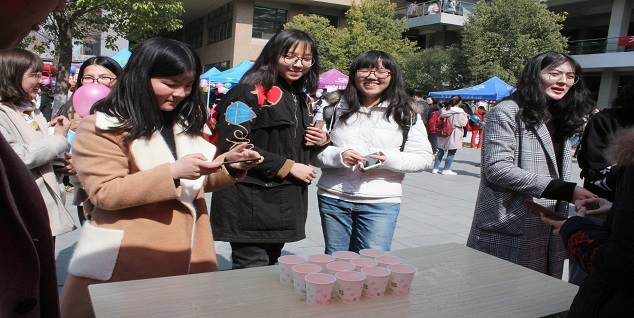 3月7日当天,银河娱乐App 在现场通过两个不同的模块开展庆祝女生节系列活动。在表白墙模块中,各位同学将自己的表白话语张贴在展板上,带去了对女生同学们诚挚的尊重与祝福;在步步为营模块中,通过“石头剪刀布”、“幸运抢抢抢”和“球球大作战”三个游戏环节,让各位女生在游戏中展现了青春风采,现场各位同学积极参与游戏互动,活动气氛愉悦火爆,欢呼声掌声不绝于耳。