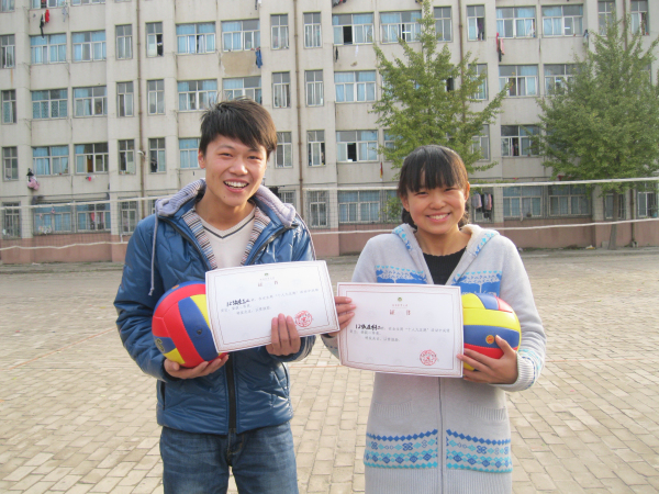 活动的主要内容有黎明惊喜、贴心愿、送祝福等等。最为精彩的部分是今天举行的“欢声笑语,精彩不断——彩色星期日”活动。该活动包括彩色连珠炮和十人九足跑两个节目。虽然天气寒冷,但同学们都热情高涨,积极地参与到活动中去。获奖情况如下: