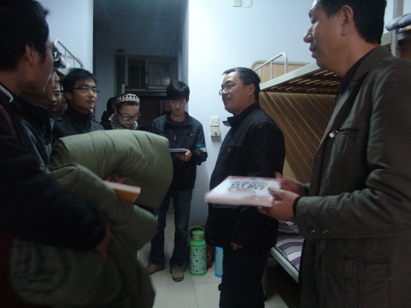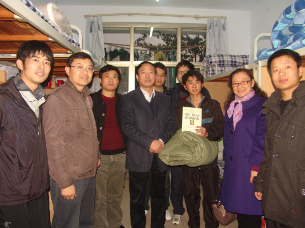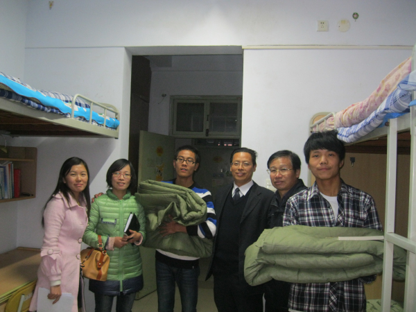 杨德东书记、夏越新处长一行人等亲切走访了受资助学生宿舍,给同学们送去了温暖的棉被和精致的书籍。活动过程中,杨书记关切的询问了学生们的生活和学习情况,告诉同学们不要有什么精神负担,一心一意搞好学习,银河娱乐App