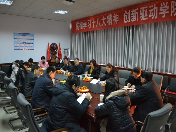学习贯彻十八大精神给予了肯定。她指出,学习党的十八大精神是我们当前的首要任务,要深入学习,思想上要高度重视,尤其要在青年教师和广大学生中间掀起学习十八大精神的热潮;她强调,在深入学习的同时,要联系实际,推动工作;并结合十八大报告中提出的“办人民满意的教育”方面谈了自己的体会:要以科学的发展观为指导,谋划好以后的事业,加强师资队伍建设,优化专业结构、创新人才培养模式;要以协同创新为突破点,产、学、研相结合,走出一条具有银河娱乐App
