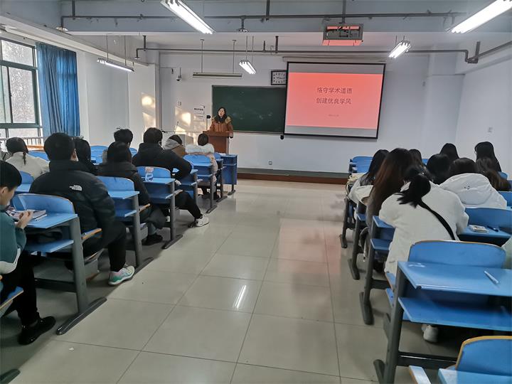 2021级研究生召开“恪守学术道德,创建优良学风”主题班会并组织签署《学术道德规范承诺书》。辅导员郑真真、2021级全体研究生参加。
