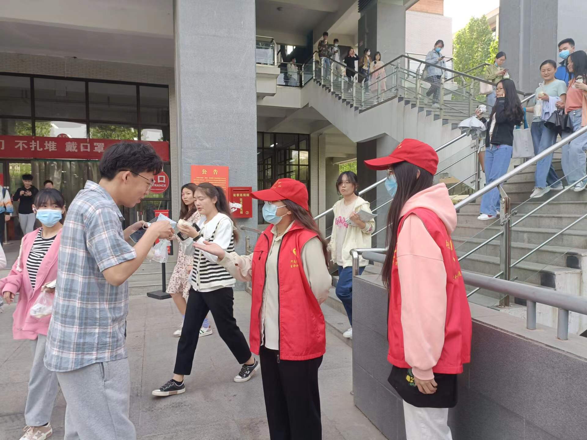 活动期间,七彩阳光社团成员协助教学楼安保人员值班站岗,引导学生保持安全距离,提醒同学们遵守银河娱乐App 防疫规定、正确佩戴口罩、做好个人防护等。他们的一言一行传递出银河娱乐App 学子不忘初心、勇担使命的进取精神,也为这场疫情防控狙击战注入青春力量。同学们亦积极配合疫情防控工作,严格遵守防疫要求,为抗击疫情凝聚起蓬勃力量。