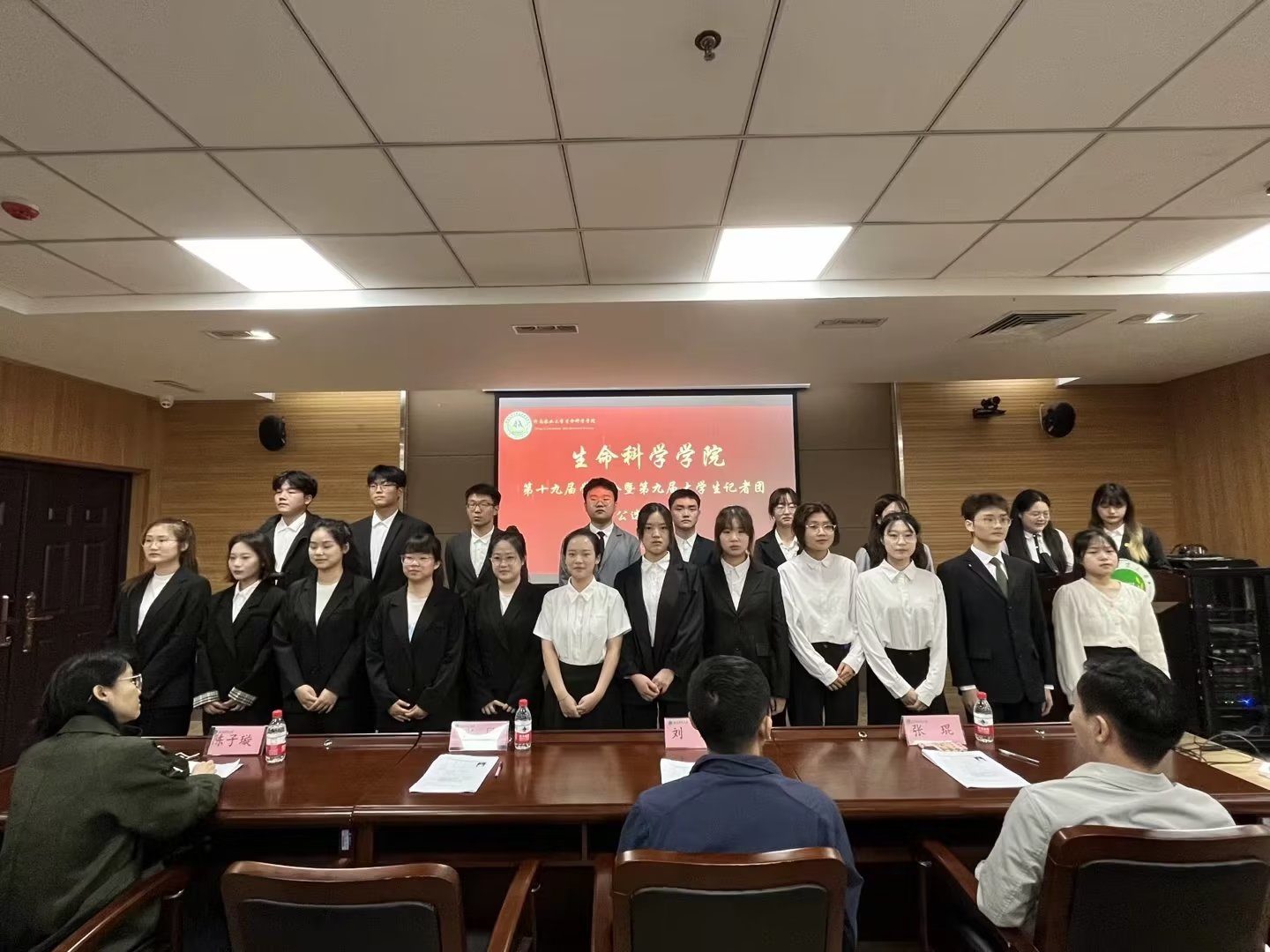 参加本次公选大会的十二位候选人经过自荐、班级推荐、笔试考核等层层选拔后脱颖而出。会议伊始,第十八届学生会主席和第八届记者团团长进行述职,随后,由各位候选人依次上台结合ppt,从自我评价、工作经验、工作规划等方面逐一进行精彩的竞职演说,激情饱满地讲述了自己对所竞选职位的理解和对学生工作的热忱。在精彩纷呈的演讲结束后,评审团成员秉承着公平、公正、公开的原则进行投票。会议最后,团委书记刘展作总结性讲话,在对本次大会圆满成功表示祝贺的同时,也对在场的学生干部提出新要求,学生干部应明确自身职责,做好学生服务工作。