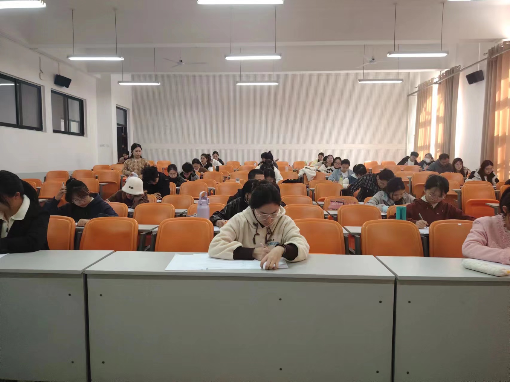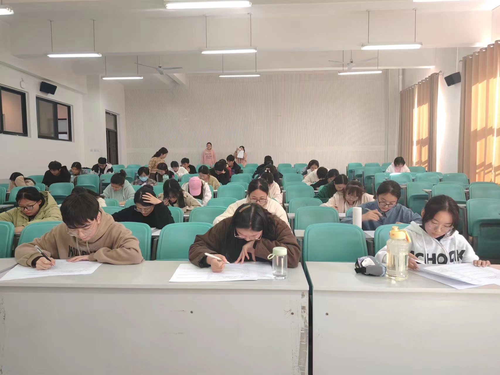 此次考试以闭卷形式展开,试题分为选择题、填空题、判断题、简答题和材料分析题五种形式,内容涉及党史知识、二十大报告内容、习近平新时代中国特色社会主义思想及时政热点等多方面内容,全面考察学生对党章党规、时事政治和国家战略方针的了解。在党建学生干部为同学们宣读考试纪律后,本次考试正式开始。考试期间,考生们认真端正,严于律己,聚精会神地答题;监考人员严格监考,规范考场纪律,营造了良好的考试氛围。考试结束后,同学们有序交卷并依次离开考场。