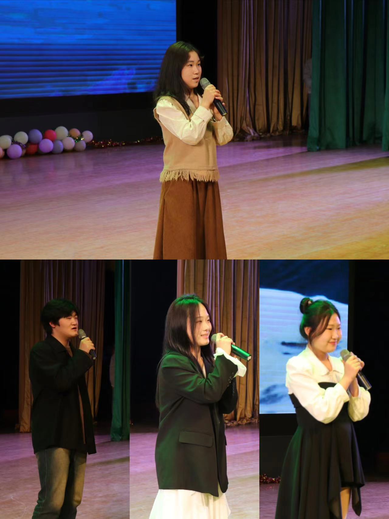 本届好声音大赛吸引众多23级同学踊跃报名,经过初赛及复赛的遴选,最终共八名选手入围总决赛。首先,院艺术团以一支活力四射的开场舞为此次比赛拉开序幕,点燃现场气氛。接着,主持人介绍本次比赛流程:本次比赛共分三轮,分别为淘汰赛八进五、好友帮帮唱及冠军争霸赛。随后,参赛选手依次上台表演,风格迥异,个性十足。许奕辰同学演唱歌曲《永不失联的爱》,透露着情窦初开的少年对爱情的憧憬向往;吴梦涵同学《最初的记忆》述说着初恋的青涩美好;曹钰玲的《太阳》折射着青年大学生内心的憧憬和希望;李易萌同学的《借过》道尽了无数次分别后的千丝万缕。赛中穿插歌词接龙、好友帮帮唱等多种互动游戏,让观众也参与进来,现场笑声不断,掌声雷动,为此次晚会增添了不少欢乐,也帮助选手们缓解了紧张的心情。经过三轮激烈的角逐,最终,吴梦涵同学摘得桂冠,李易萌、曹钰玲同学分别荣获亚军和季军,夏豪泽同学喜获“最佳人气奖”。在观众们的热烈掌声中,本次活动顺利结束。