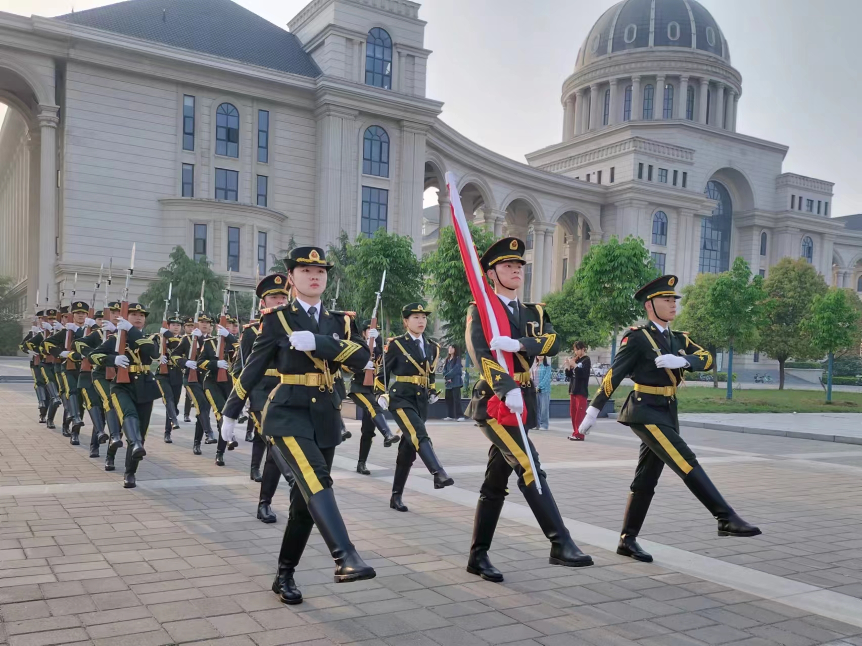 仪式伊始,国旗护卫队正步护送国旗入场。随着庄重的国歌声响起,五星红旗冉冉升起,全体师生肃立,行注目礼。礼毕,刘国兵书记围绕“守护国家安全,青年挺膺担当”发表讲话。他指出国家安全问题不仅仅是国家的事,更是每一个公民的事,青年需从自身做起,努力维护国家安全大局,共同构筑起一道坚不可摧的国家安全屏障,并对此提出三点建议:一是守护国家安全,首先要从自我做起。要树立正确的价值观,秉持道德底线,坚守法律红线。要保护好自己的隐私和信息安全,同时要谨记保守国家秘密的重要性;二是守护国家安全,要积极参与社会事务。要关心国家大事,关注社会动态,为社会稳定和谐发展贡献自己的力量。要关注国家安全形势,学习国防知识,增强国家安全意识,做到心中有国、行动有方;三是守护国家安全,更需要同学们挺膺担当。要勇于承担社会责任,勇于发声,勇于捍卫国家尊严和利益。也要勇敢面对挑战,勇敢追求梦想,为实现中华民族伟大复兴的中国梦而努力奋斗。随后,青马班学生代表张雅哲就国家安全进行演讲,指出新时代青年学子要积极维护国家安全,肩负时代责任。最后,全体师生合唱校歌《绿色颂》。