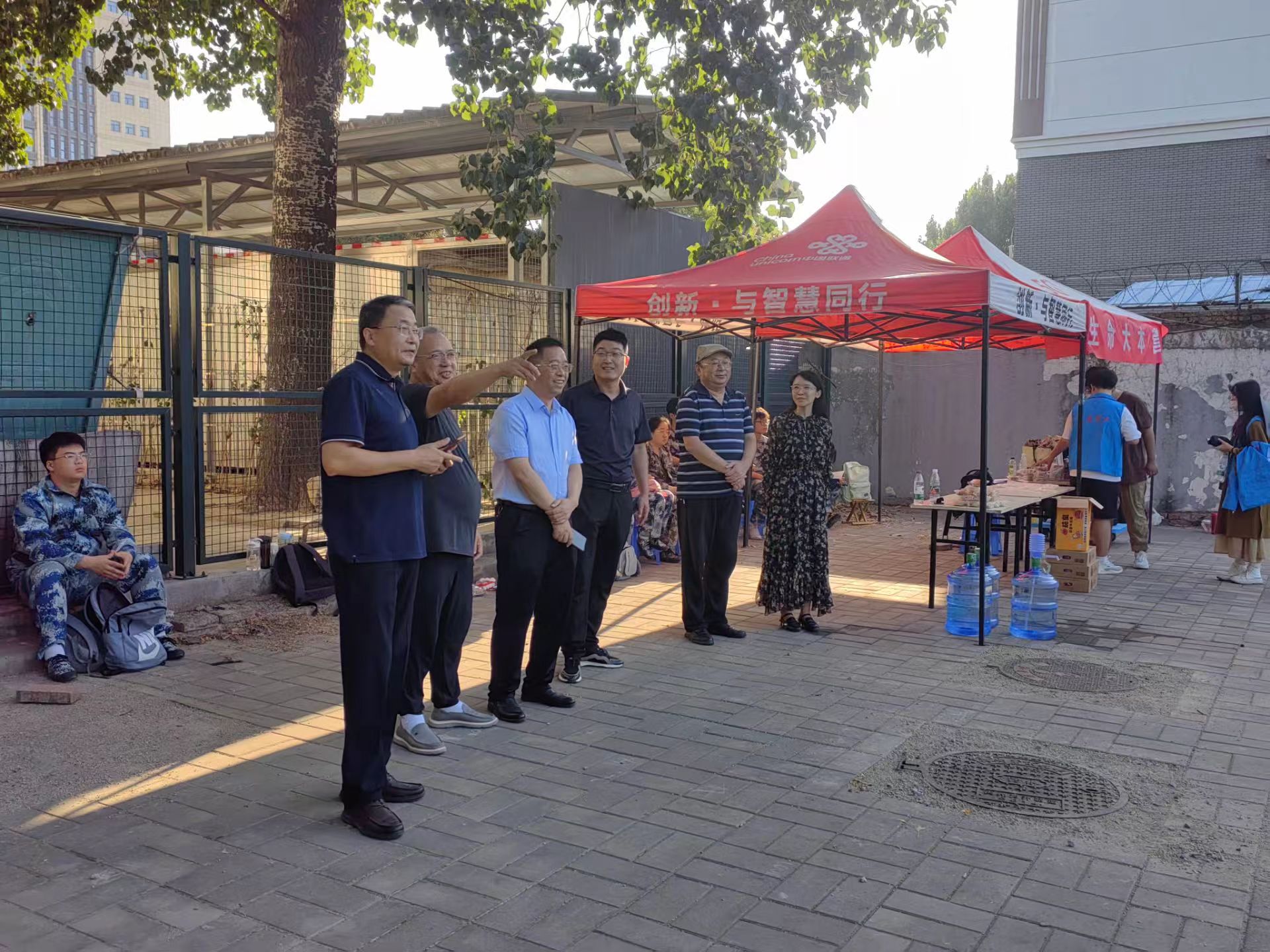 党委书记刘国兵、院长吴建宇、党委副书记张世昌、副院长郑文明、张会勇以及 24 级辅导员陈子璇一同莅临文化路校区军训现场,对正在军训的 2024 级新生进行亲切慰问。