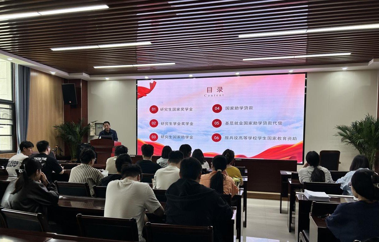 会议伊始,刘展为同学们详细介绍了研究生国家奖学金、研究生学业奖学金和研究生学业助学金的具体内容,为大家讲解其奖励标准、申请条件以及评选流程。随后,他向同学们介绍了国家助学贷款,并分别介绍了高校助学贷款和生源地助学贷款各自的政策要求、申请流程、贷后政策和还款事项等多方面内容,强调同学们要注意国家助学贷款的还款期限,做到及时还款。同时,刘展还为大家解释了什么是基层就业国家助学贷款代偿和服兵役高等银河娱乐App 学生国家教育资助,并鼓励仍处于迷茫阶段的同学踊跃报名征兵,献身国防发光发热。
