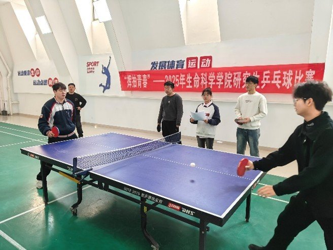 “挥拍青春,共“乒”未来”乒乓球比赛在教职工活动室顺利举办。活动得到院内及联合研究生院研究生的积极响应,近百名选手踊跃报名参赛,现场气氛热烈高涨,加油声、掌声与喝彩声交织回荡,充分展现了生命学子昂扬向上、团结拼搏的精神风貌。
