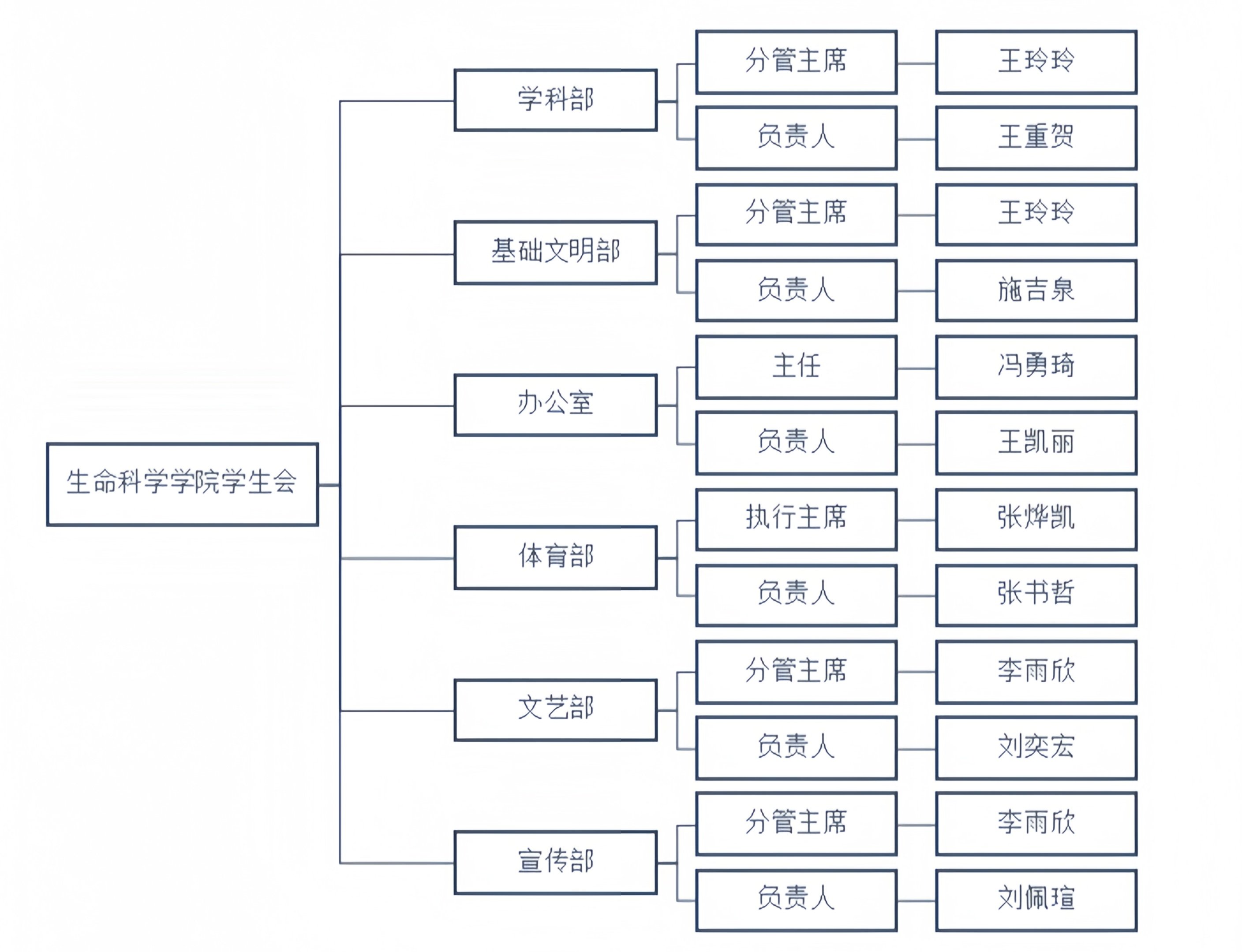 银河娱乐App 学生会精简高效,由主席团及其下属的6个部门组成。现将各部门的职责介绍如下: