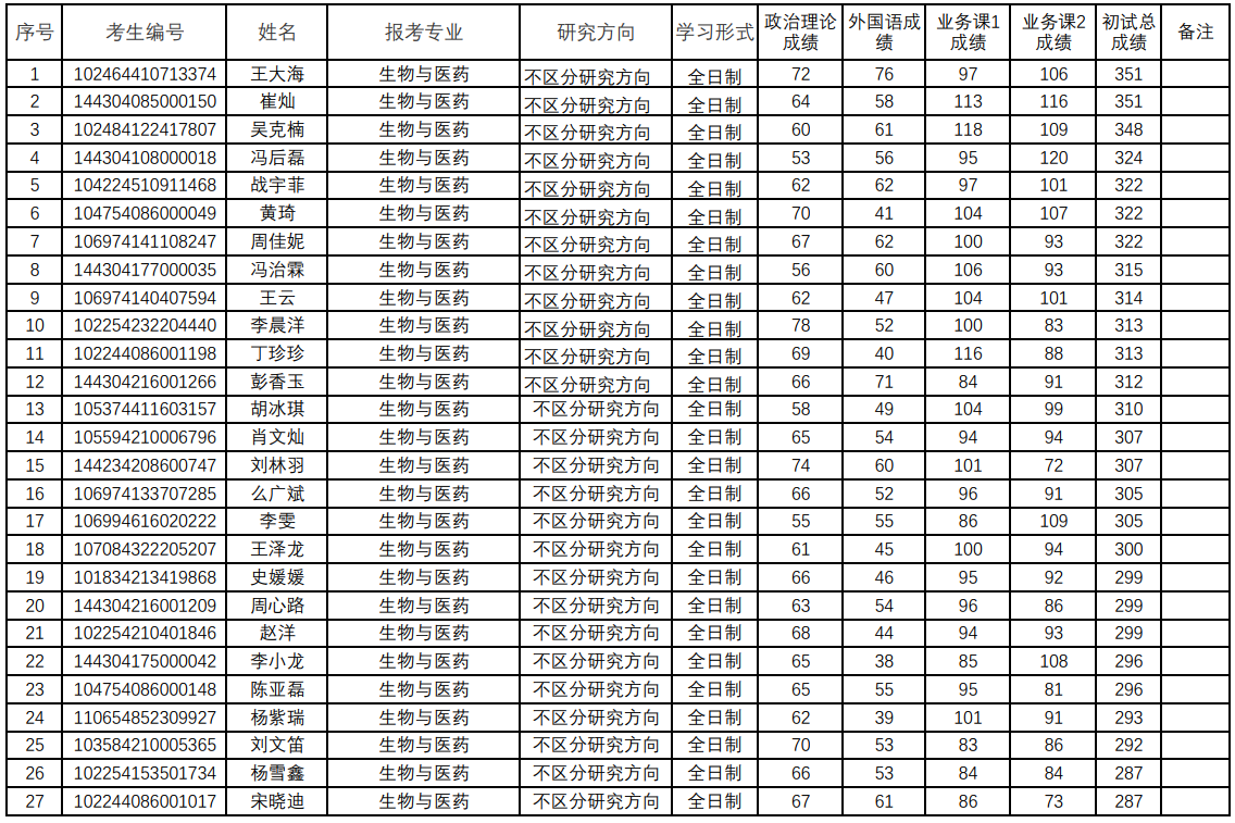 银河娱乐App 生物与医药专业调剂生复试名单(第二批)