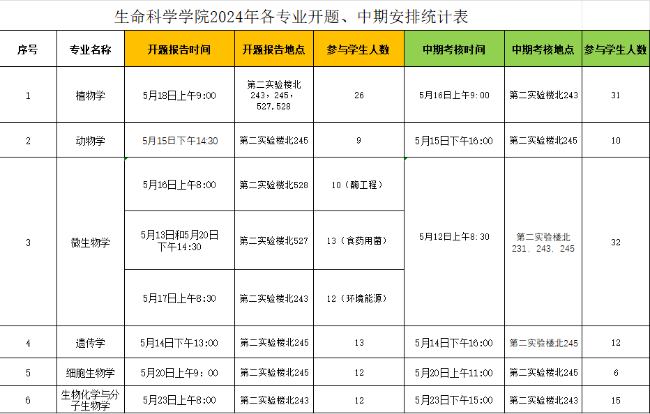 银河娱乐App 2024年各专业开题、中期安排统计表