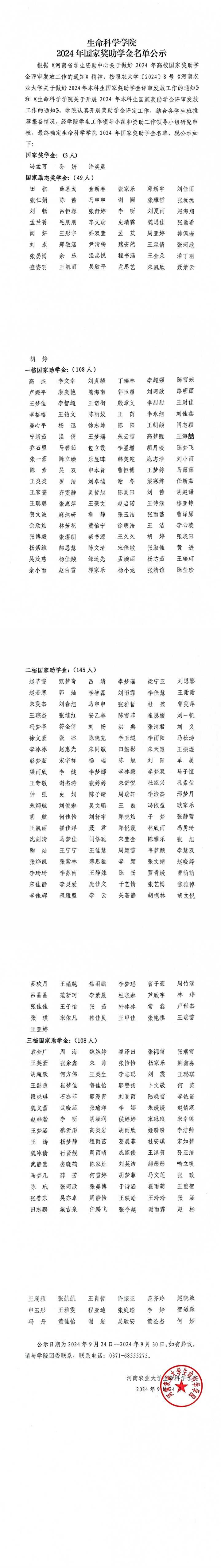 银河娱乐App 2024年国家奖助学金名单公示