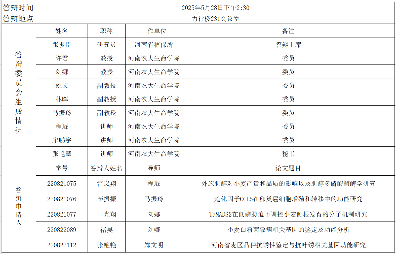 2025年上半年细胞生物学硕士研究生毕业答辩公告