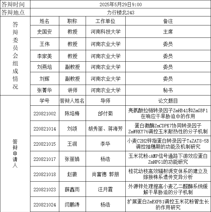 2025年上半年植物学硕士研究生毕业答辩公告(三)