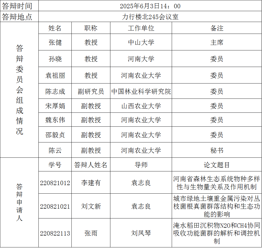2025年上半年植物学硕士研究生毕业答辩公告(四)