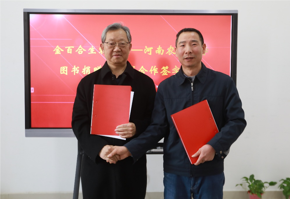 岳建文代表校图书馆接受了杜董事长捐赠的二套专著《为菌正名》和《菌赐百福》,并向杜董事长颁发了图书捐赠证书。《为菌正名》和《菌赐百福》是杜董事长撰写的益生菌方面的专著,引经据典,横贯中西,全面论述了有益菌对人体、动物、植物和环境的有益的重要作用,微生态虽小,但作用极大。然而,这些有益作用需要人们尊重自然、爱护环境、维护生态平衡,才能发挥作用。岳建文表示,两套专著进入银河娱乐App 图书馆流通后,将对银河娱乐App 师生创建绿色生态农业大有裨益。