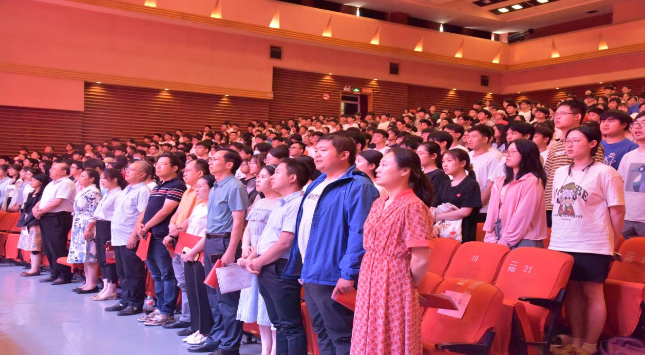 最后,学生工作表彰大会暨入党宣誓大会在全体师生共唱《绿色颂》的优美歌声中落下帷幕。