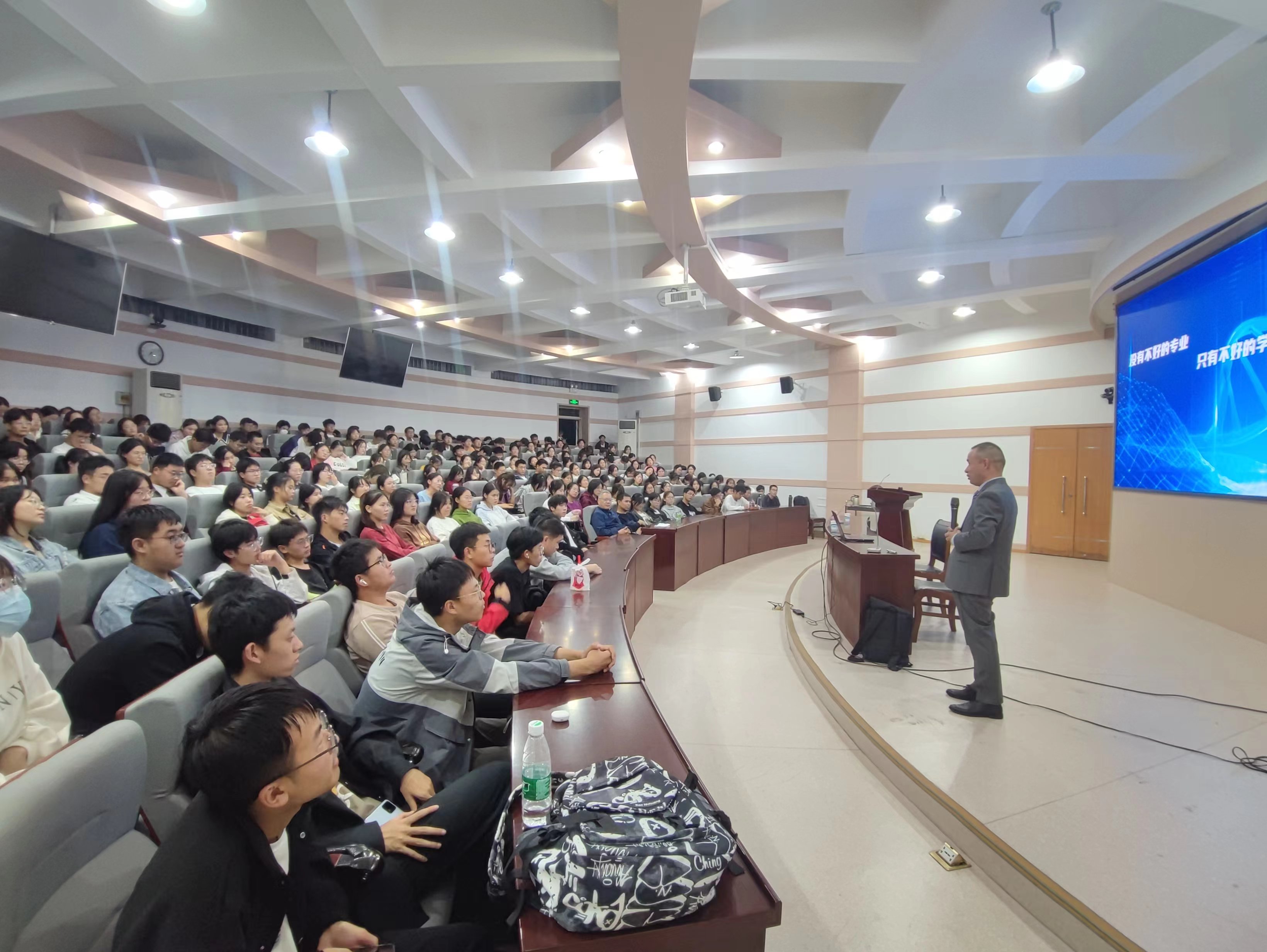 最后,许远航与现场同学针对学习生活中的问题和困难进行了交流。此次报告会的举办有助于引导新生科学规划本科阶段的学习生活,增强同学们对专业学习的认知和了解,帮助同学们顺利适应大学期间的学习生活。