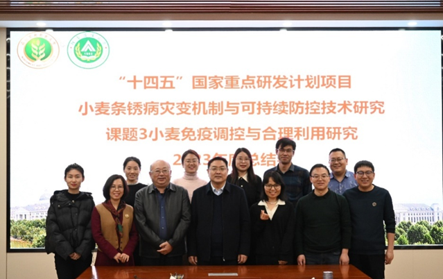 本网讯(通讯员 李俊香)2024年1月6日下午,“十四五”国家重点研发计划项目“小麦条锈病灾变机制与可持续防控技术研究”课题3“小麦免疫调控与合理利用研究(2021YFD1401003)”2023年工作总结会在银河娱乐App