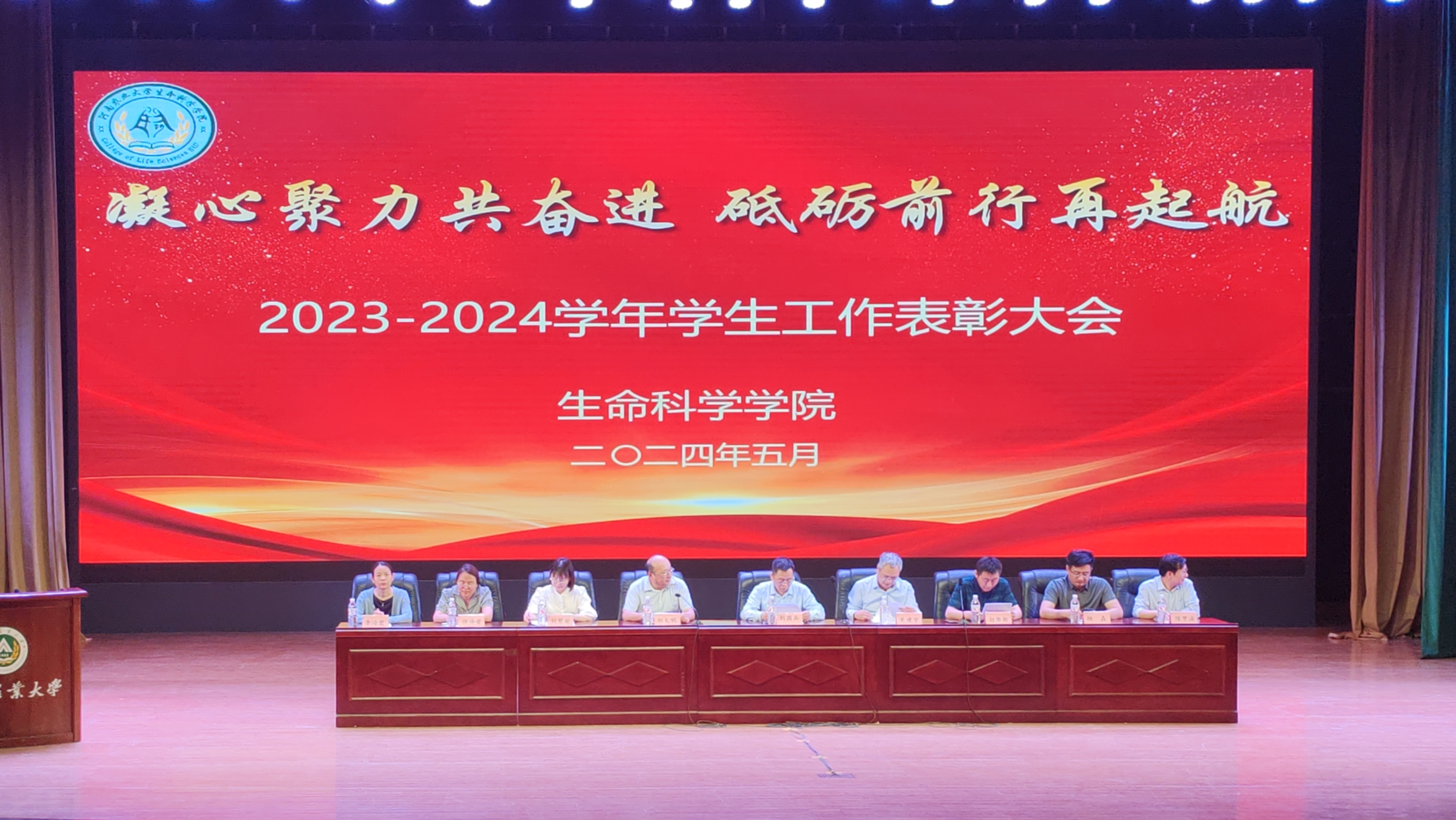 在文化路校区大礼堂举办2023-2024学年学生工作表彰大会,院党委书记刘国兵、院长吴建宇、副院长郑文明出席会议,各系室主任、副主任、团委老师,以及先进集体和先进个人代表和2023级全体学生参加会议。会议由副院长赵华新主持。
