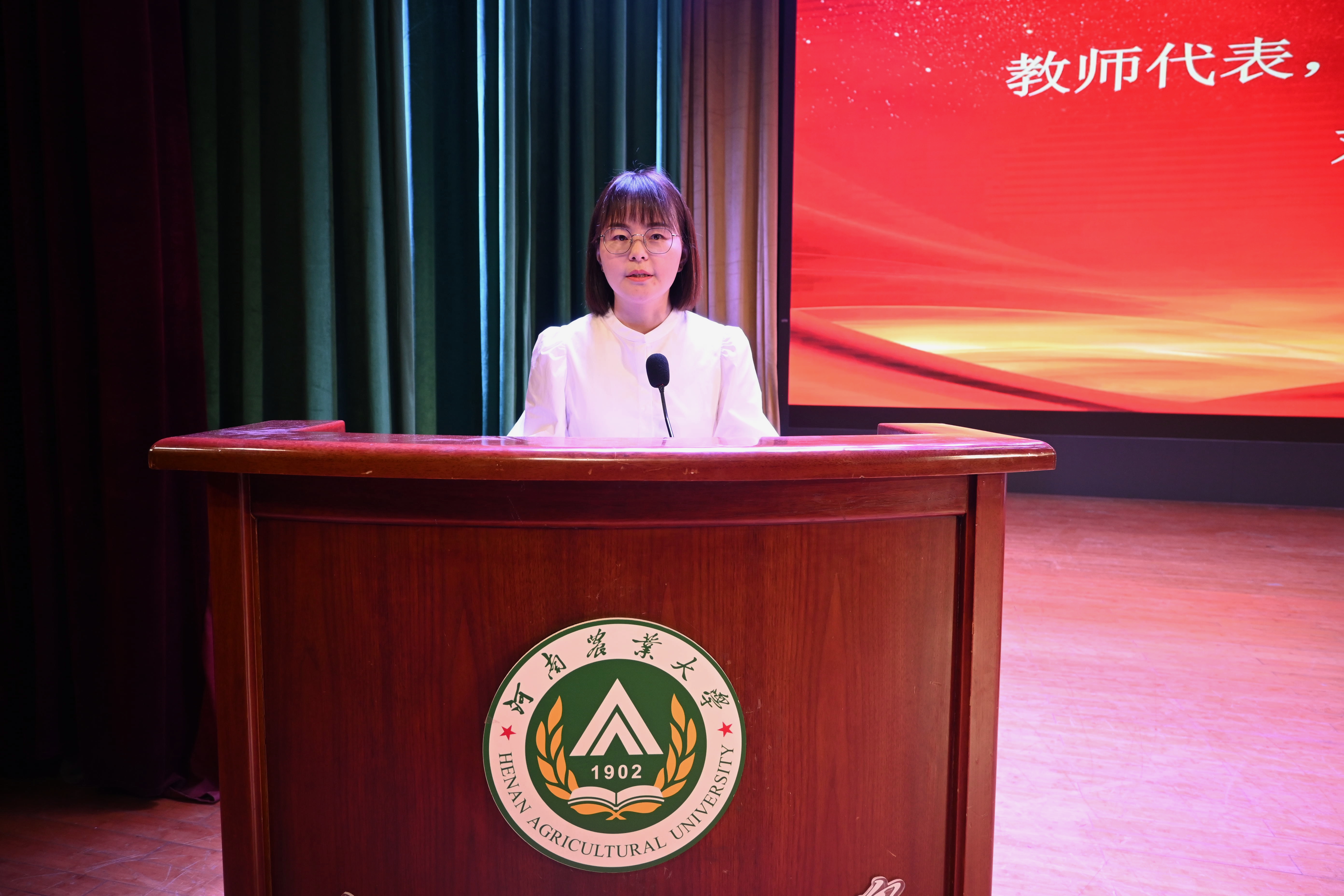 动物学系副主任、2023级生物工程一班班主任刘慧敏作为教师代表,“首届全国大学生职业规划大赛”银奖获得者赵元迪作为先进个人代表,河南省先进班集体、21级生物科学二班团支书李玉坤作为先进集体代表先后上台作交流发言,满怀感慨地介绍了从事学生工作、努力成长成才的做法和事迹。