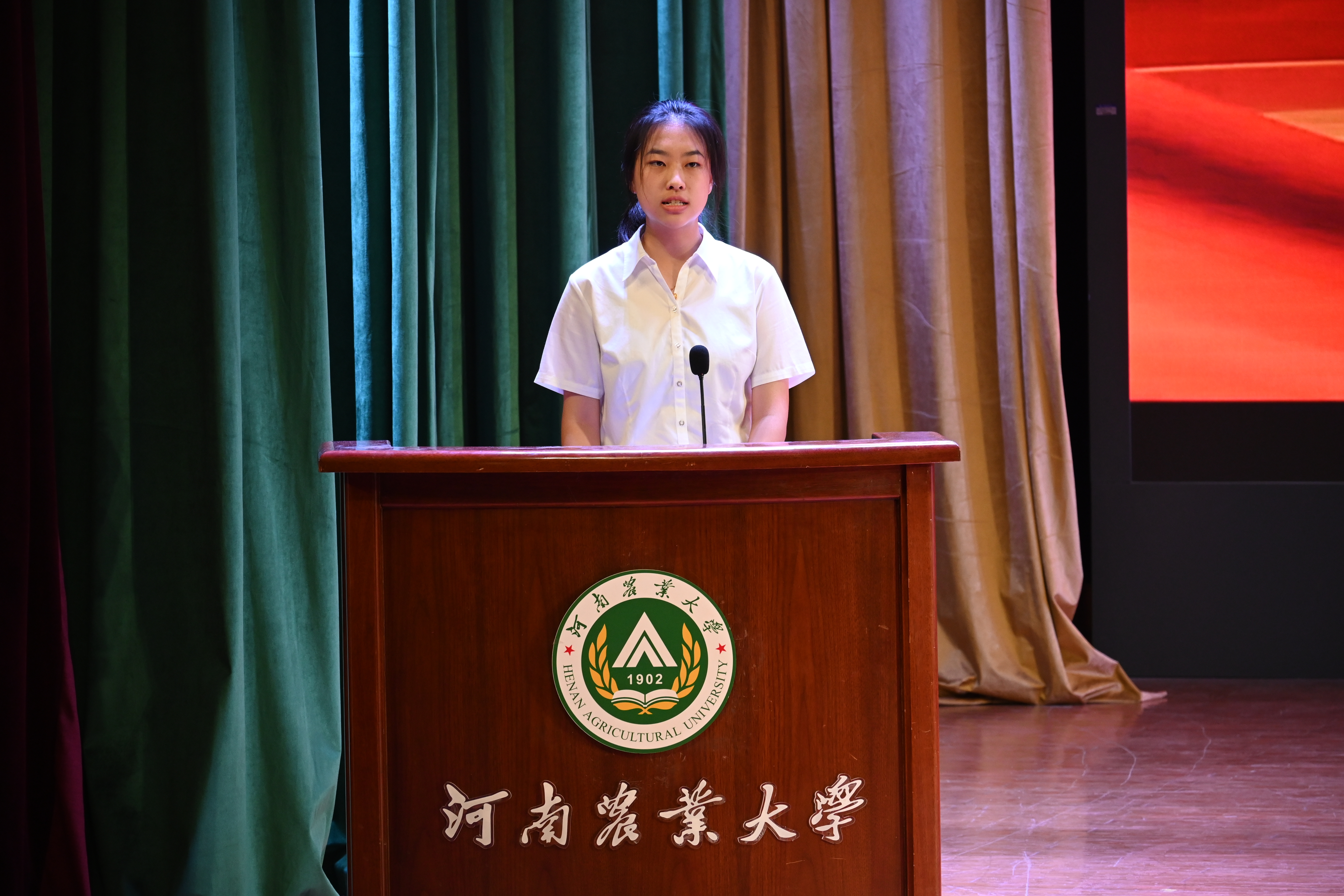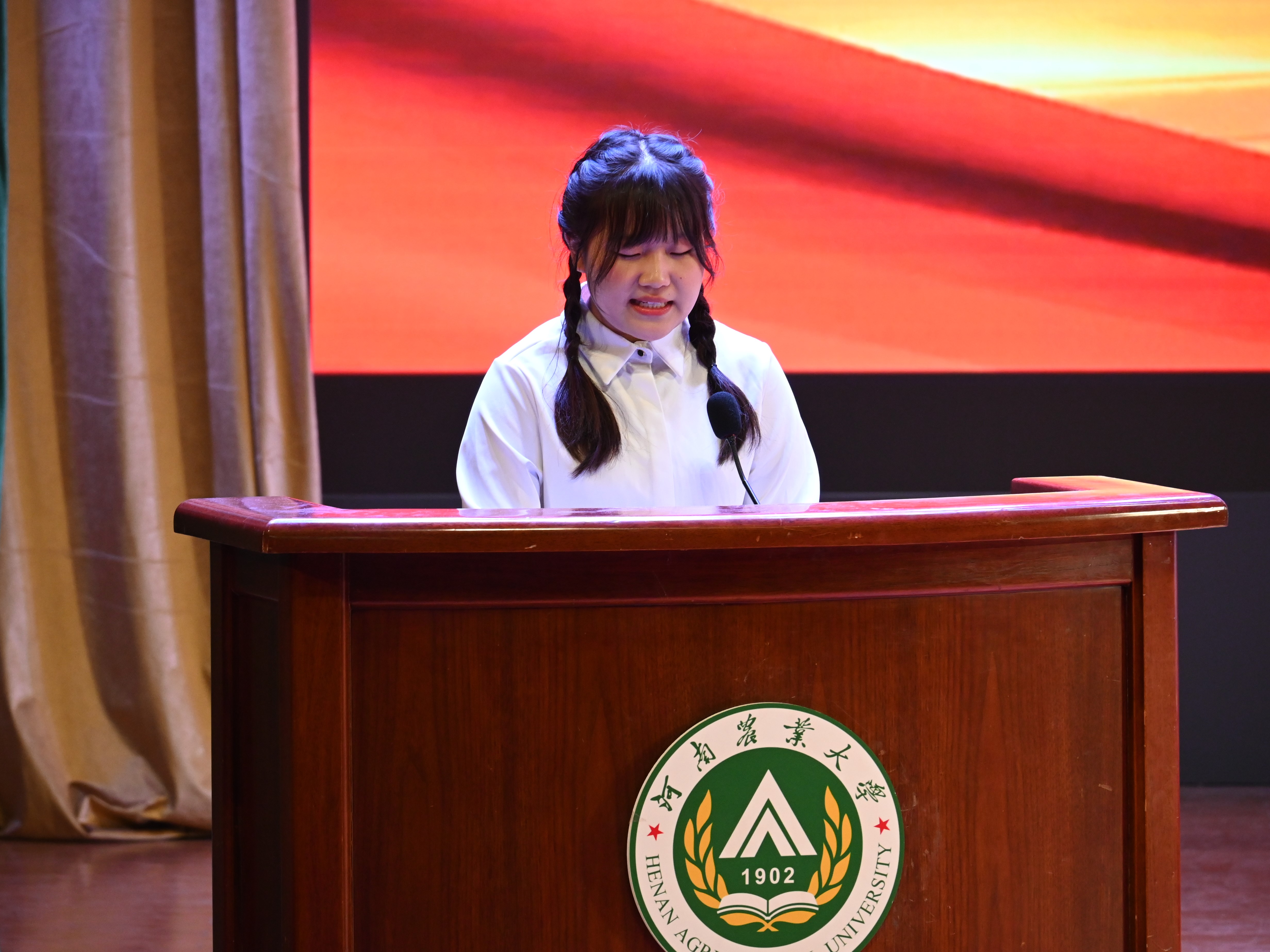 河南省先进班集体、21级生物科学二班团支书李玉坤同学在会上发言