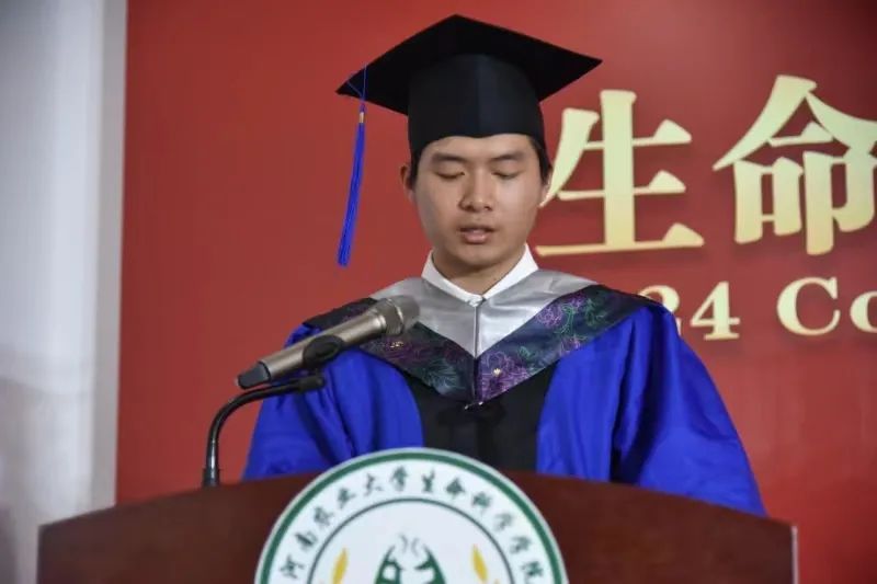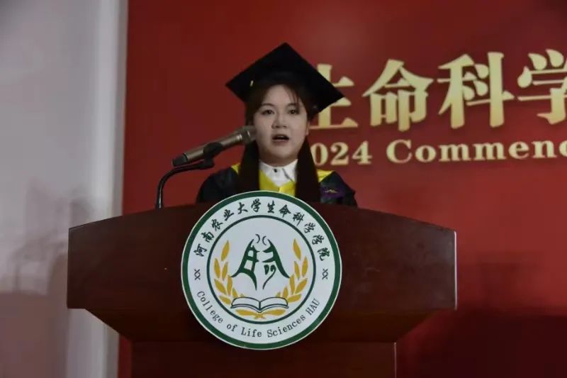 微生物学系副主任杨森教授发言,他对全体毕业生表达了殷切的祝愿,劝告大家珍惜过往,不忘初心;百折不挠,勇于拼搏;实事求是,坚守良知;全面发展,劳逸结合,在以后的生活中鹏程万里,在新的岗位上书写人生精彩新篇章!