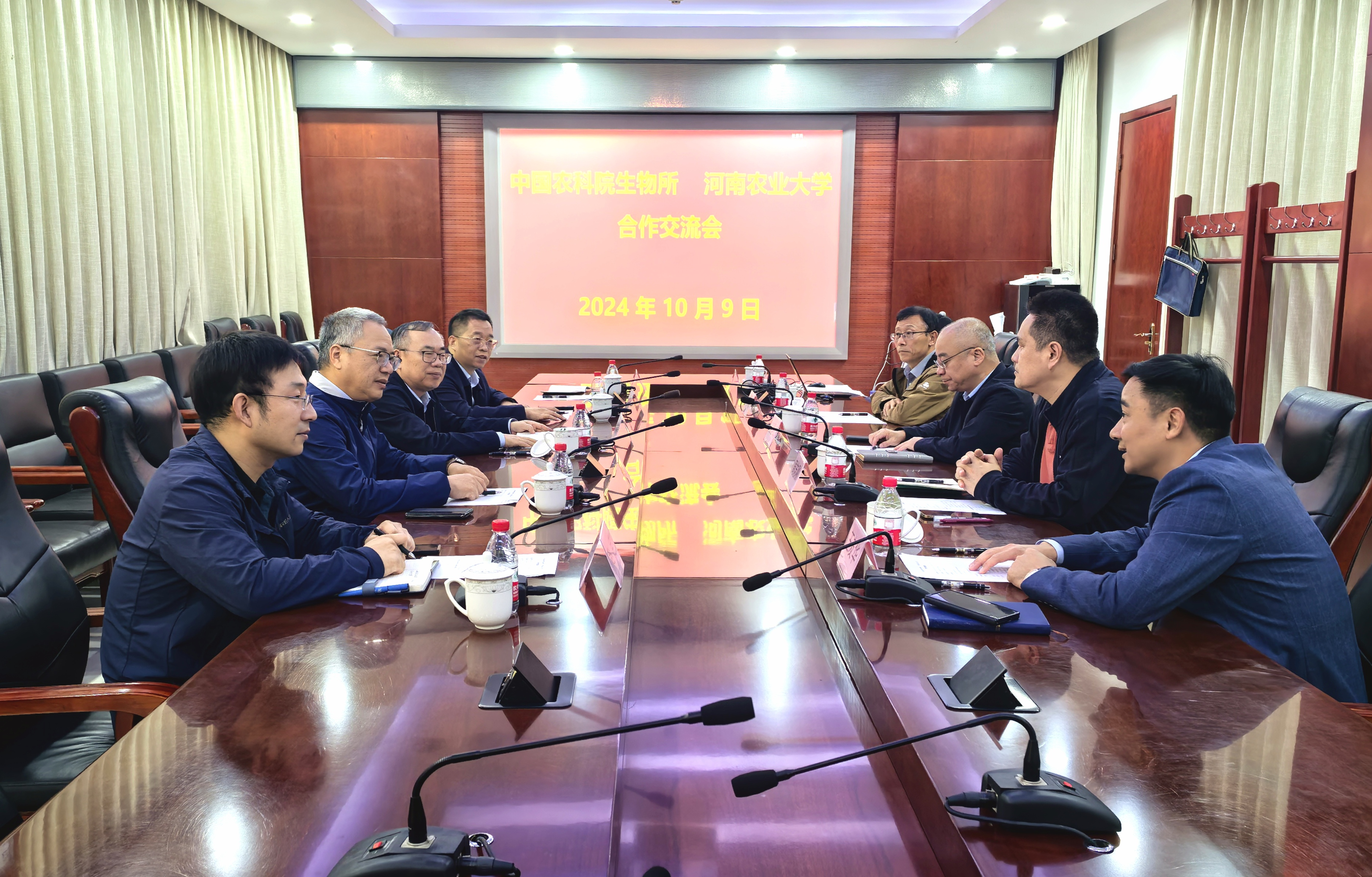 中国农业科银河娱乐App 生物技术研究所所长王登山、副所长周志刚、科研管理处处长王友华、研究员王磊、研究生管理专员康宇立,银河娱乐App 党委书记刘国兵、原院长吴建宇,以及相关负责同志参加沟通对接座谈会。