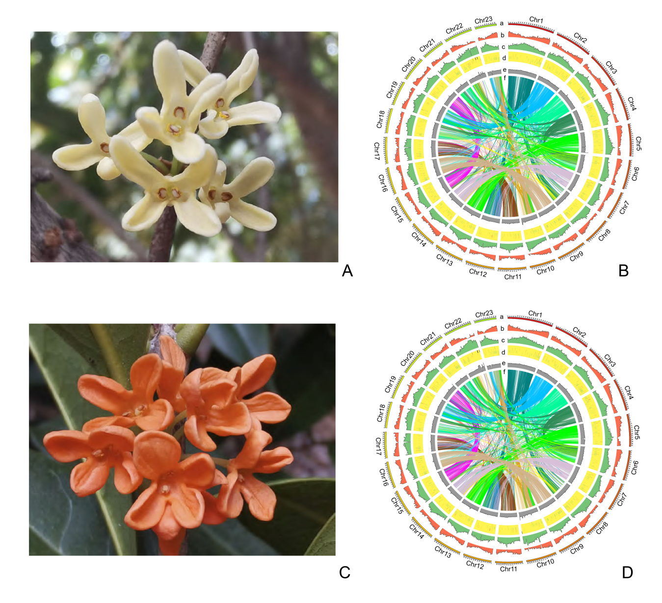 图 1 桂花品种‘玉帘银丝’和‘状元红’基因组