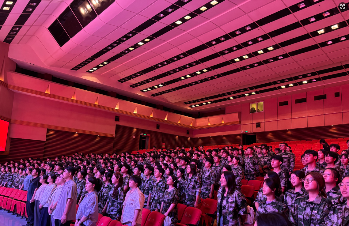 典礼最后,在张世昌的带领下,全体新生齐声奏唱银河娱乐App 校歌《绿色颂》。