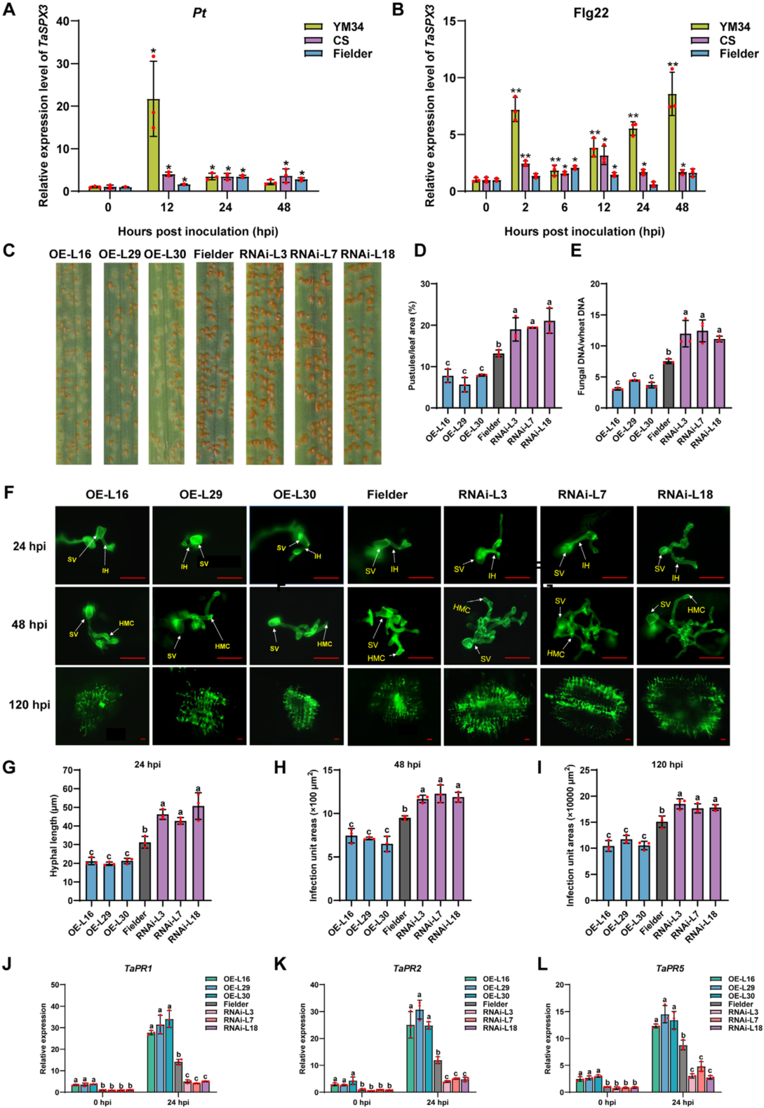 图1. TaSPX3参与小麦抗叶锈病的功能鉴定