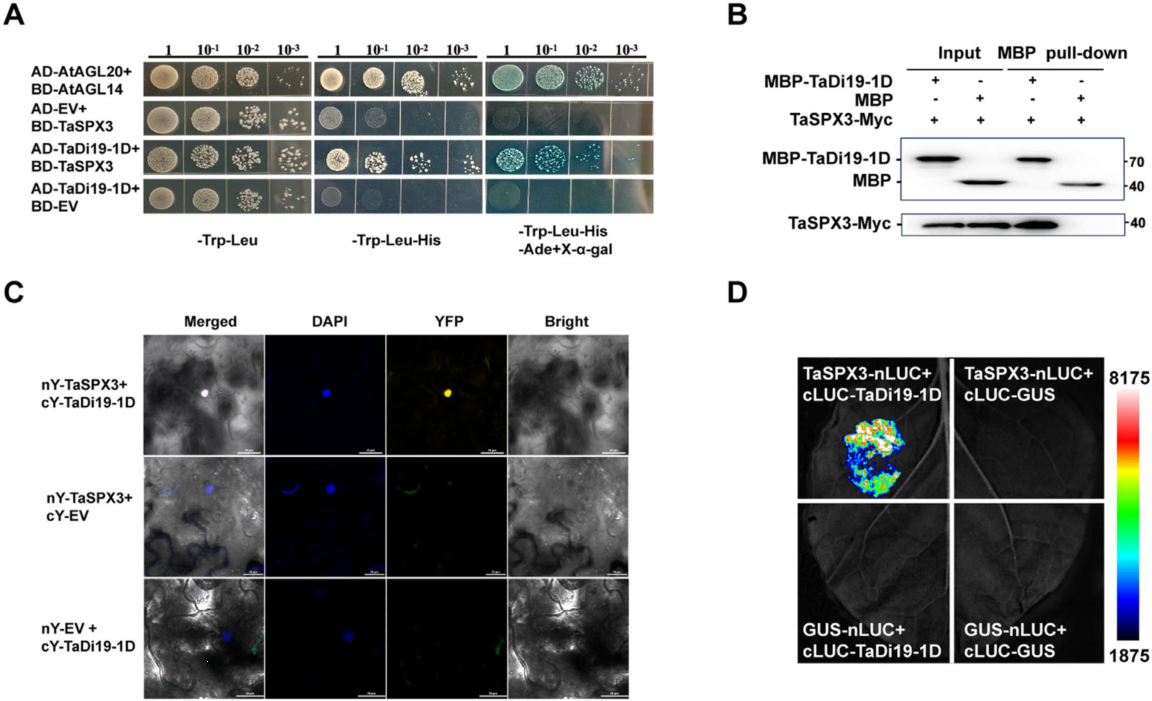 图2. TaSPX3与TaDi19-1D互作