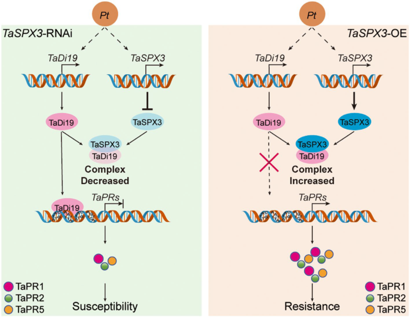 图4. TaSPX3-TaDi19-TaPRs调控小麦免疫反应的模型图