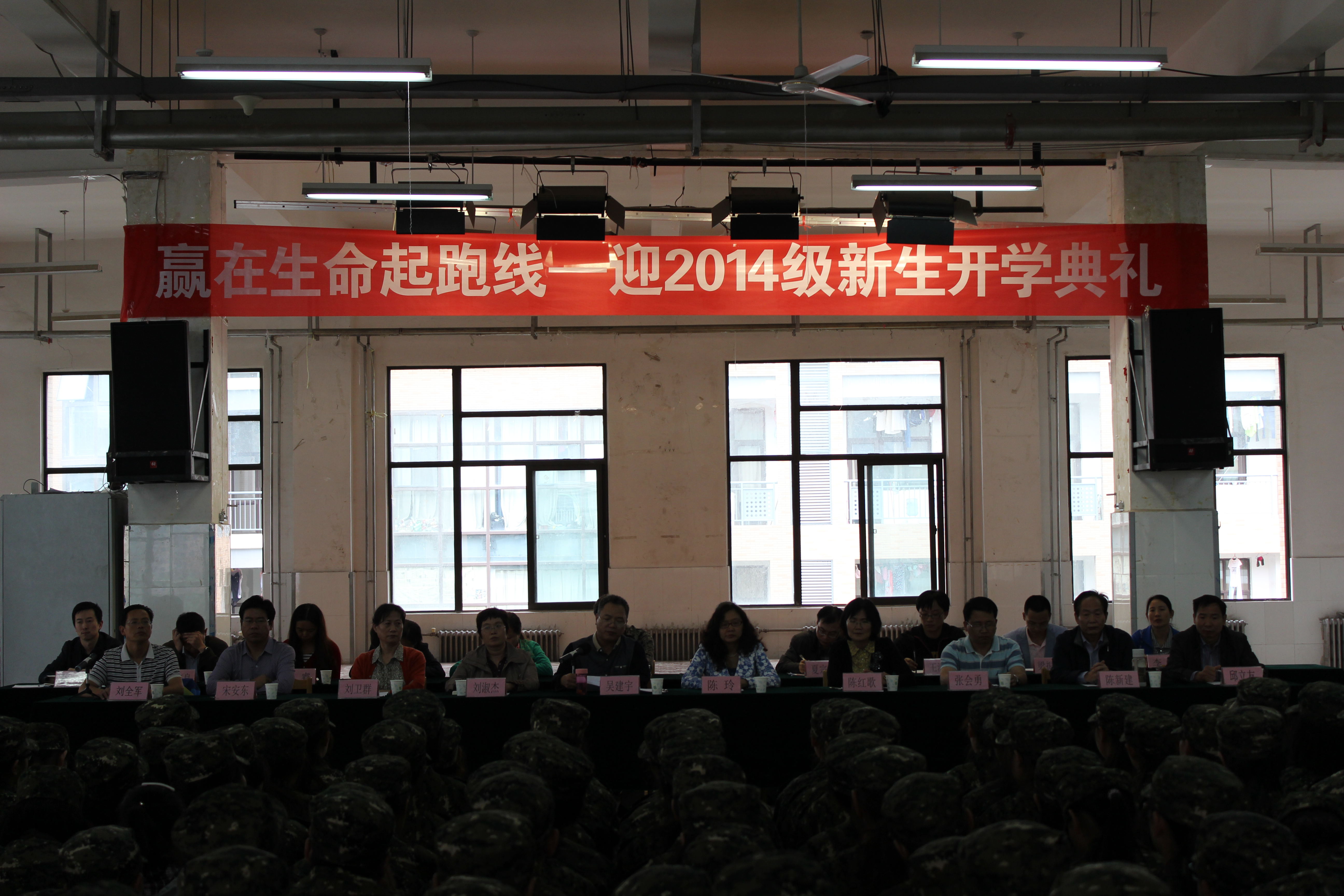 在龙子湖校区餐厅三楼大学生活动中心举办“赢在生命起跑线——迎2014级新生开学典礼”,院党委书记陈玲,院长吴建宇,院党委副书记刘全军,副院长陈红歌、刘淑杰,院团委书记程城,银河娱乐App