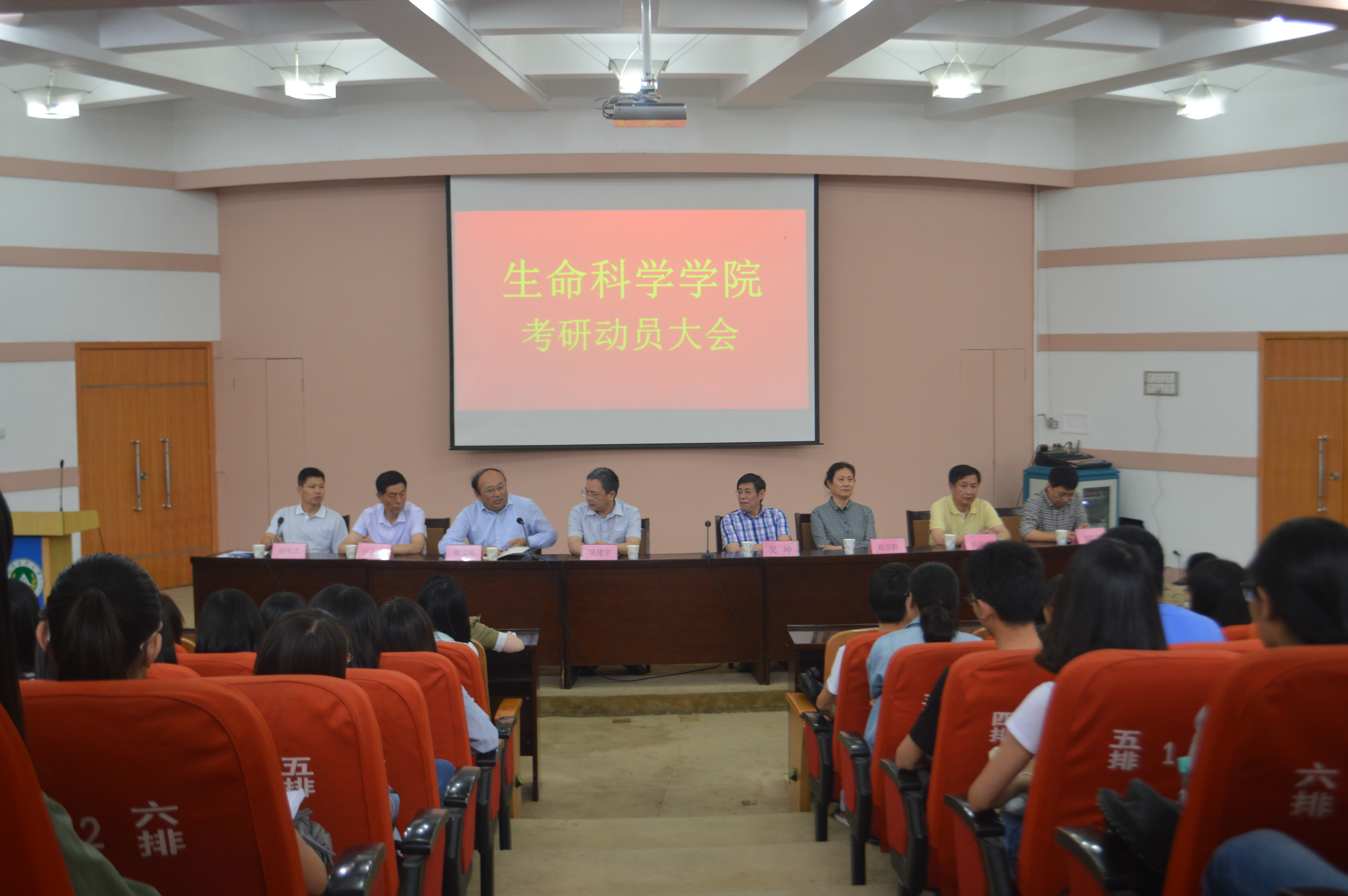 考研动员大会。院长吴建宇教授,副院长郑文明教授,副院长郭红祥教授,以及银河娱乐App